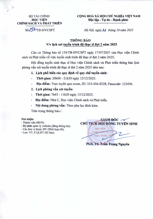 Thông báo lịch xét tuyển trình độ thạc sĩ đợt 2 năm 2025