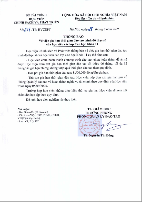Đào tạo thạc sĩ, Tin tứcThông báo việc gia hạn thời gian đào tạo trình độ thạc sĩ của học viên các lớp Cao học Khóa 11 Posted on Tháng 8 29, 2025 by Lê Thị Cẩm Thơ 29 Th8 Tải mẫu đơn tại đây: Mẫu đơn gia hạn THÔNG BÁO thời khoá biểu đợt 1, kỳ 1 cho nghiên cứu sinh Khoá 2 (tuyển sinh 2025) TÁM MƯƠI NĂM RỰC RỠ NON SÔNG: Đột phá giáo dục và sứ mệnh thế hệ trẻ trong kỷ nguyên mới